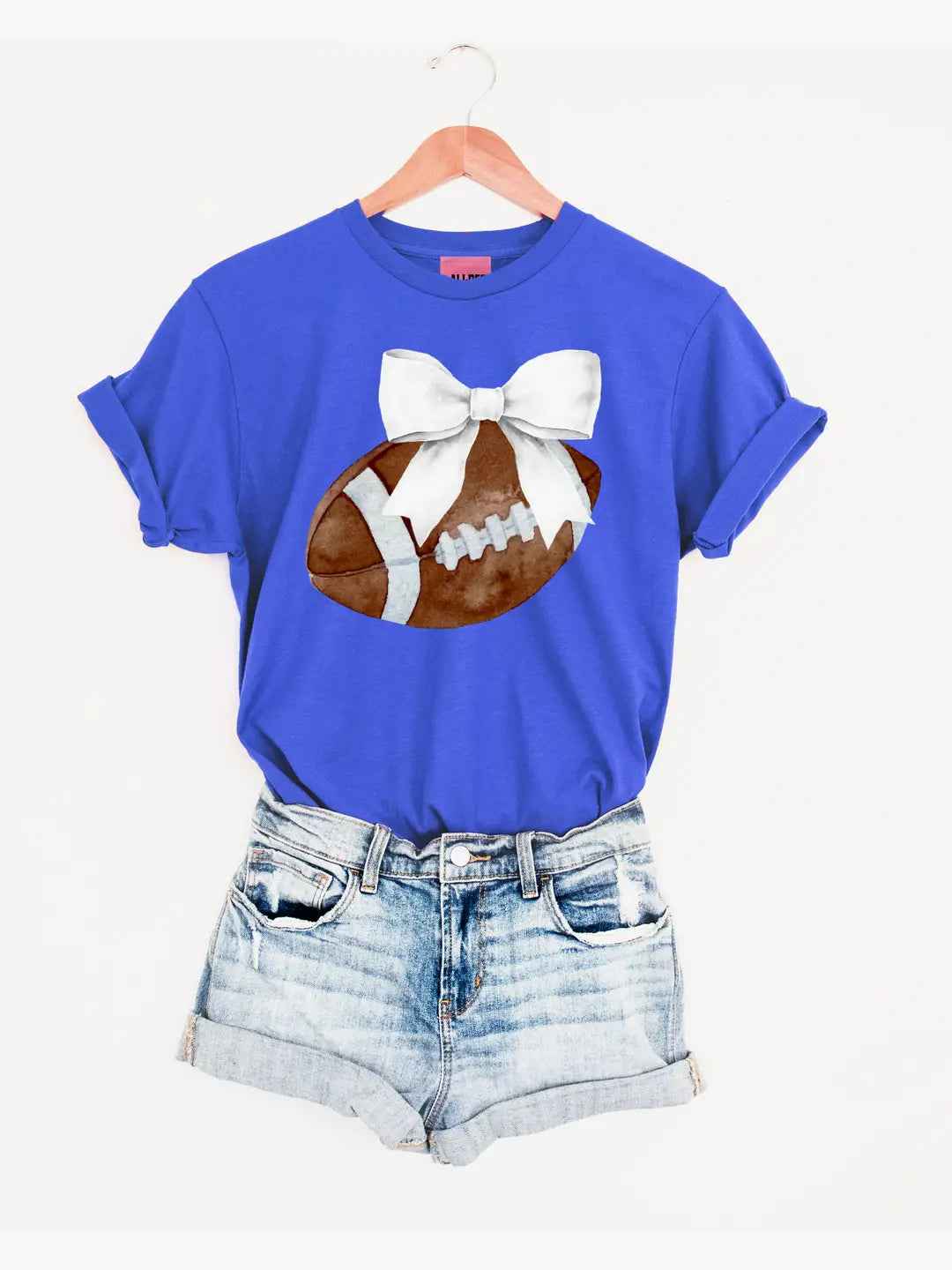 Big Bow Football By Ali Dee Customizable Gameday Football Graphic Tee - Pick Your Colors