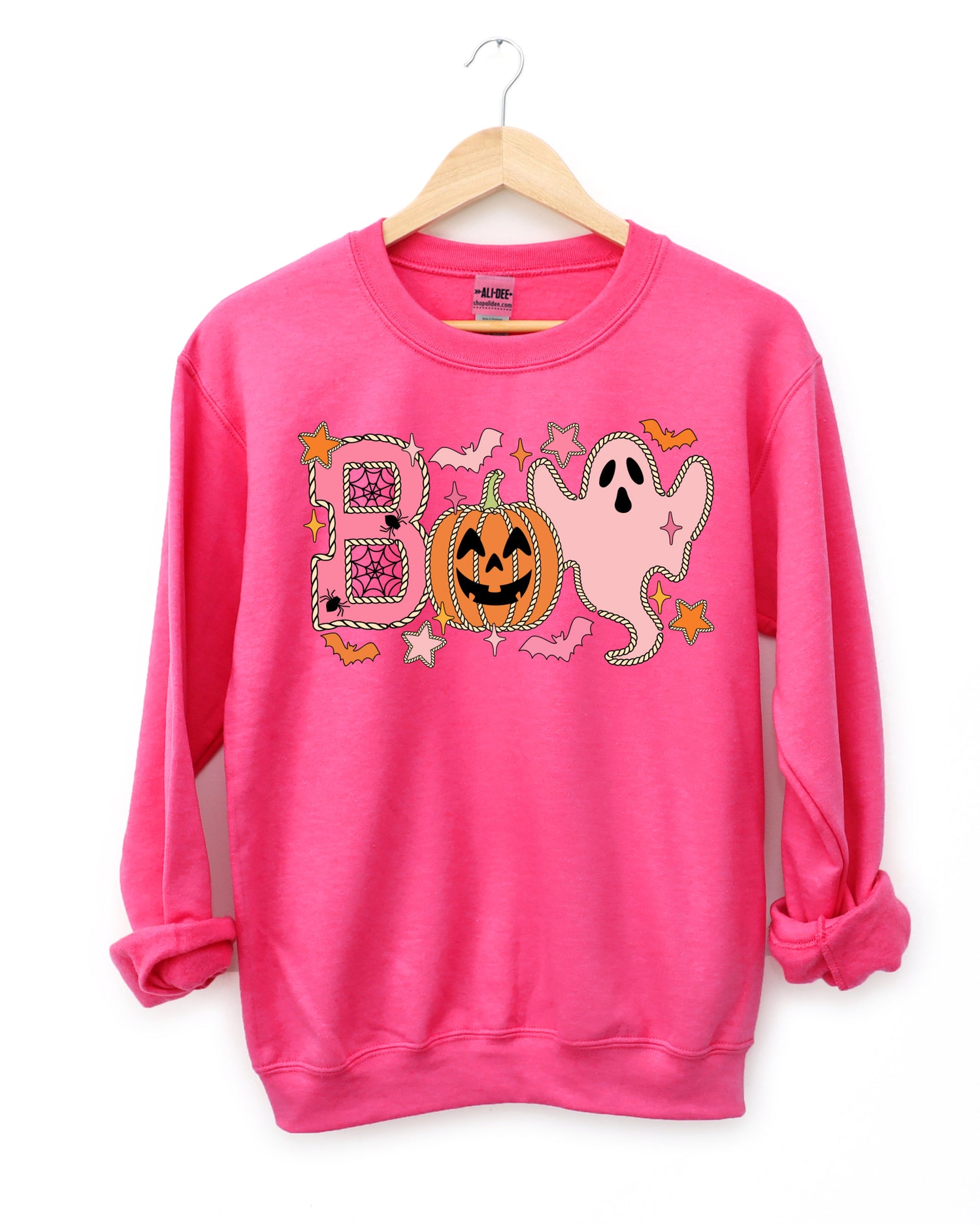 BOO HALLOWEEN Graphic Sweatshirt - Safety Pink