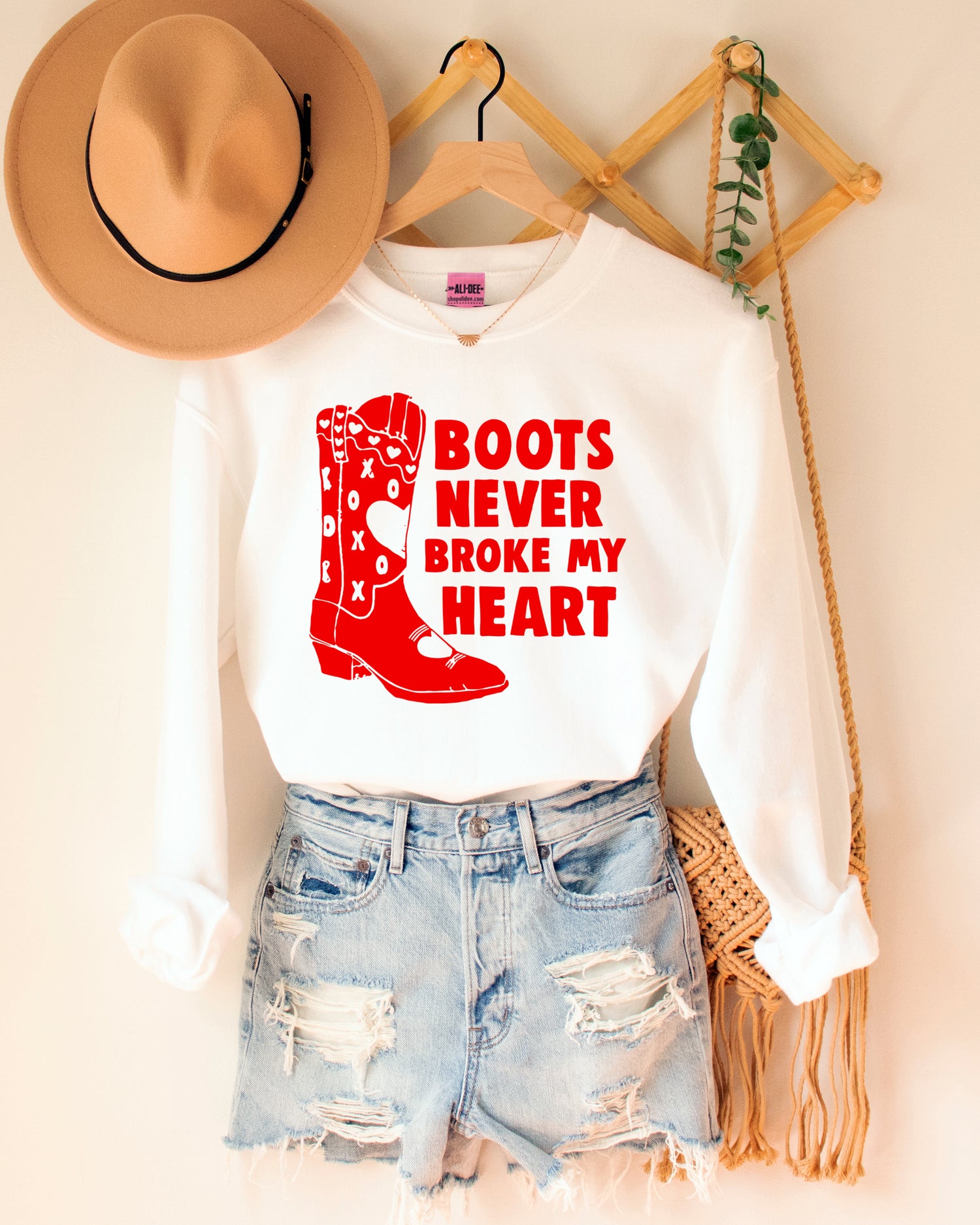 Boots Never Broke My Heart Western Valentines Sweatshirt - White