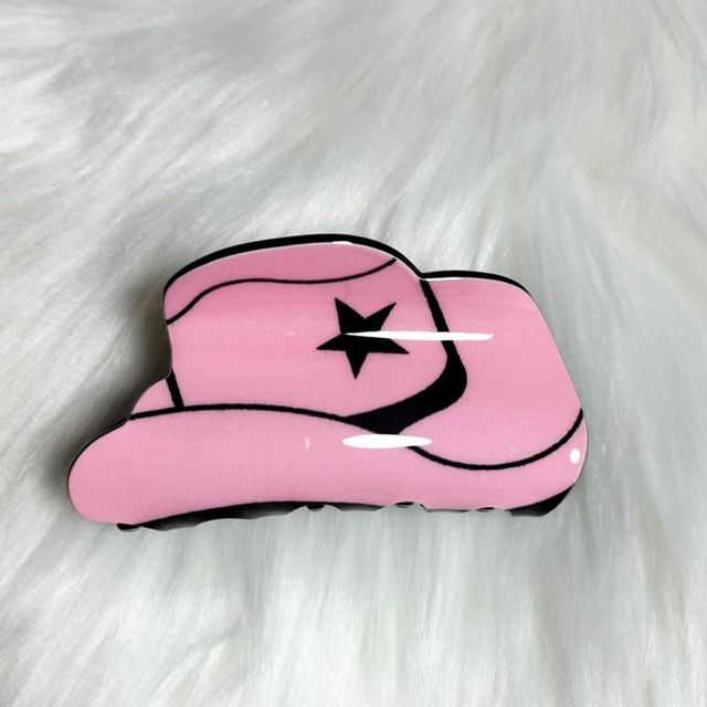 Login to view price.This fun hair accessory takes the classic claw clip to the next level, with a sleek cowboy hat design in a pretty pink hue. Whether you're lookin' for a lil' giddy-up in your look, or just want to show off a wild-west-inspired cowgirl aesthetic, this clip is the perfect accessory to get you gallopin' in style.