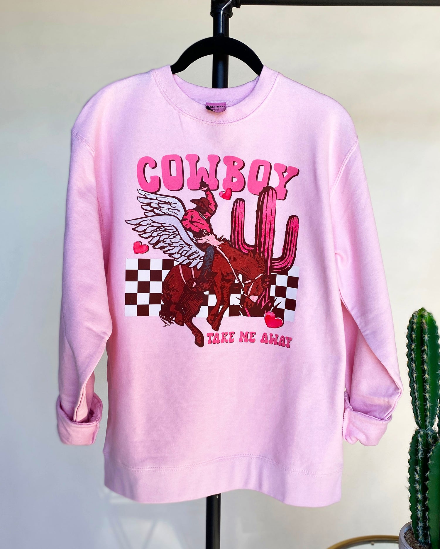 Cowboy Take Me Away Valentines Day Graphic Sweatshirt - Pink