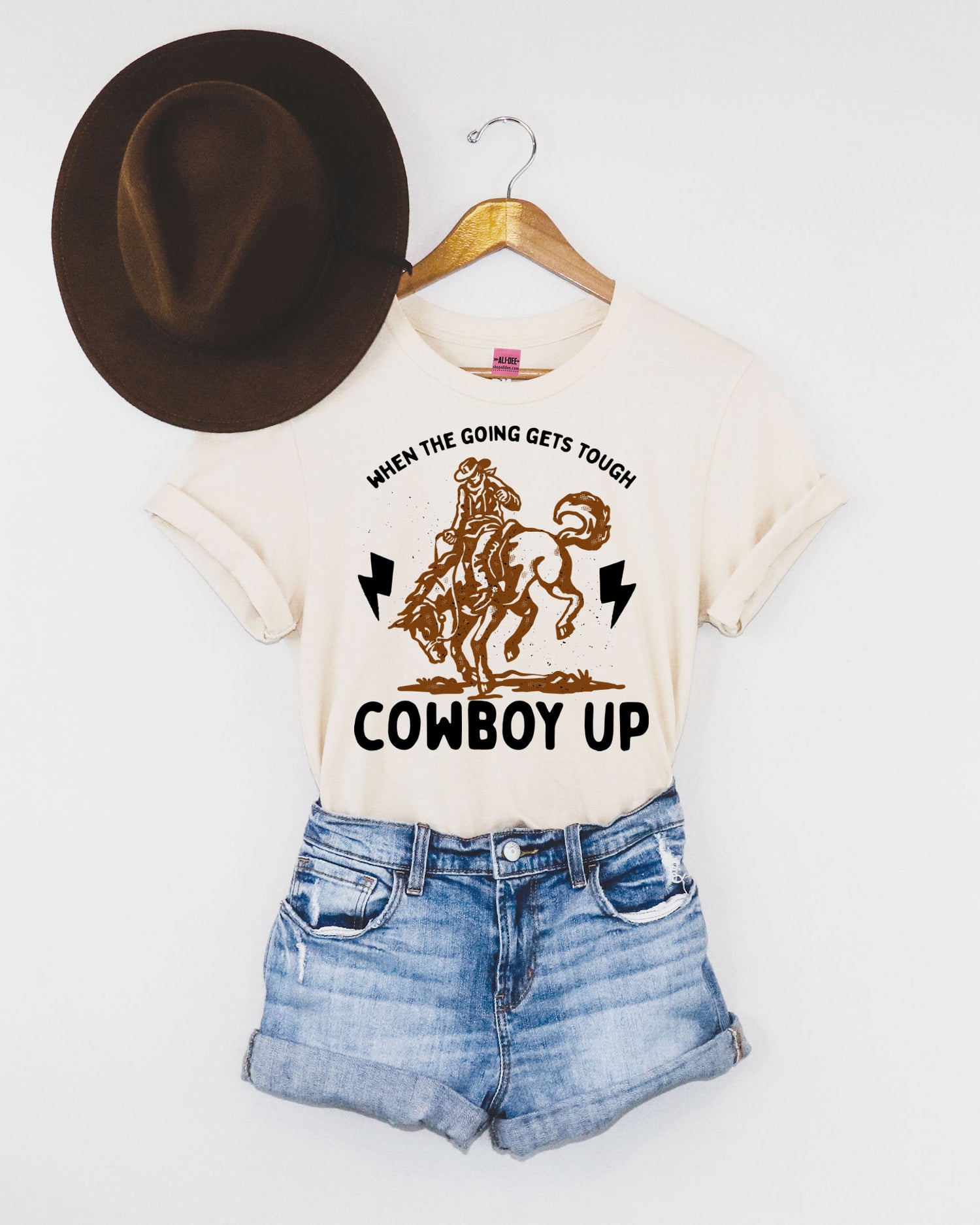 Login to view price.Cowboy Up wholesale graphic tee by Ali Dee features a unisex fit body in vintage white with full color artwork.