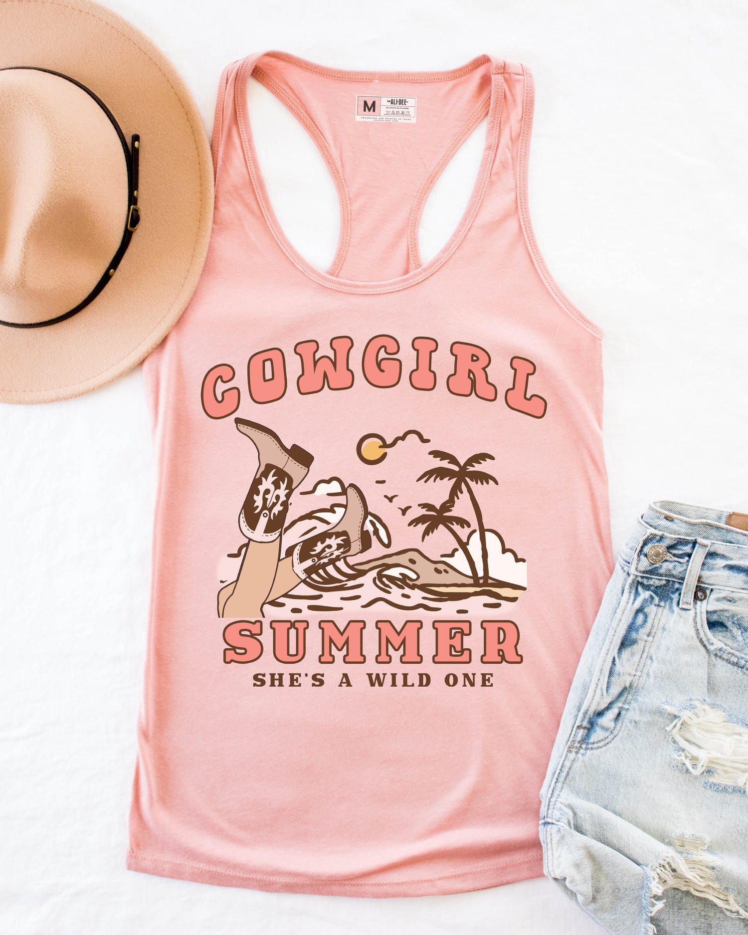 Login to view price.Cowgirl Summer wholesale graphic tank by Ali Dee features a women's fit tank in desert pink with full color artwork.
