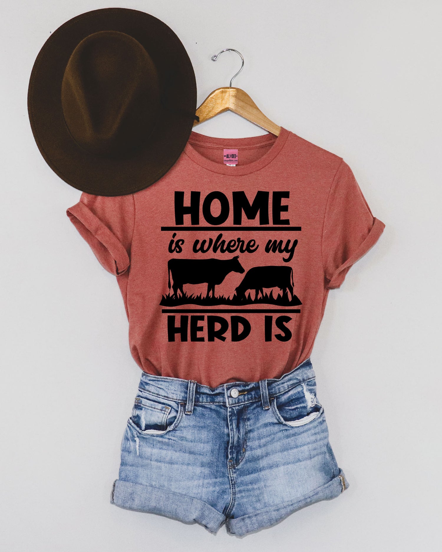 Home is Where My Herd Is Western Graphic Tee - Heather Clay