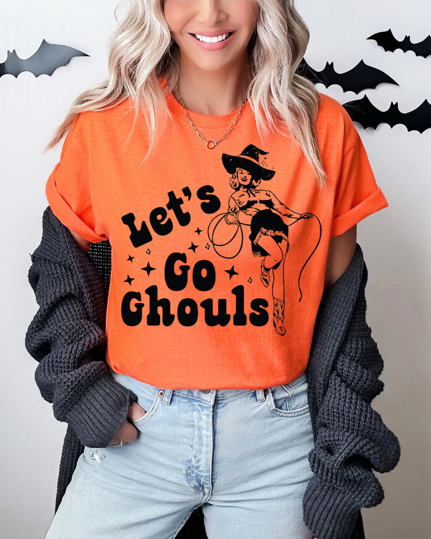 Let's Go Ghouls Halloween Graphic Tee - Heather Orange