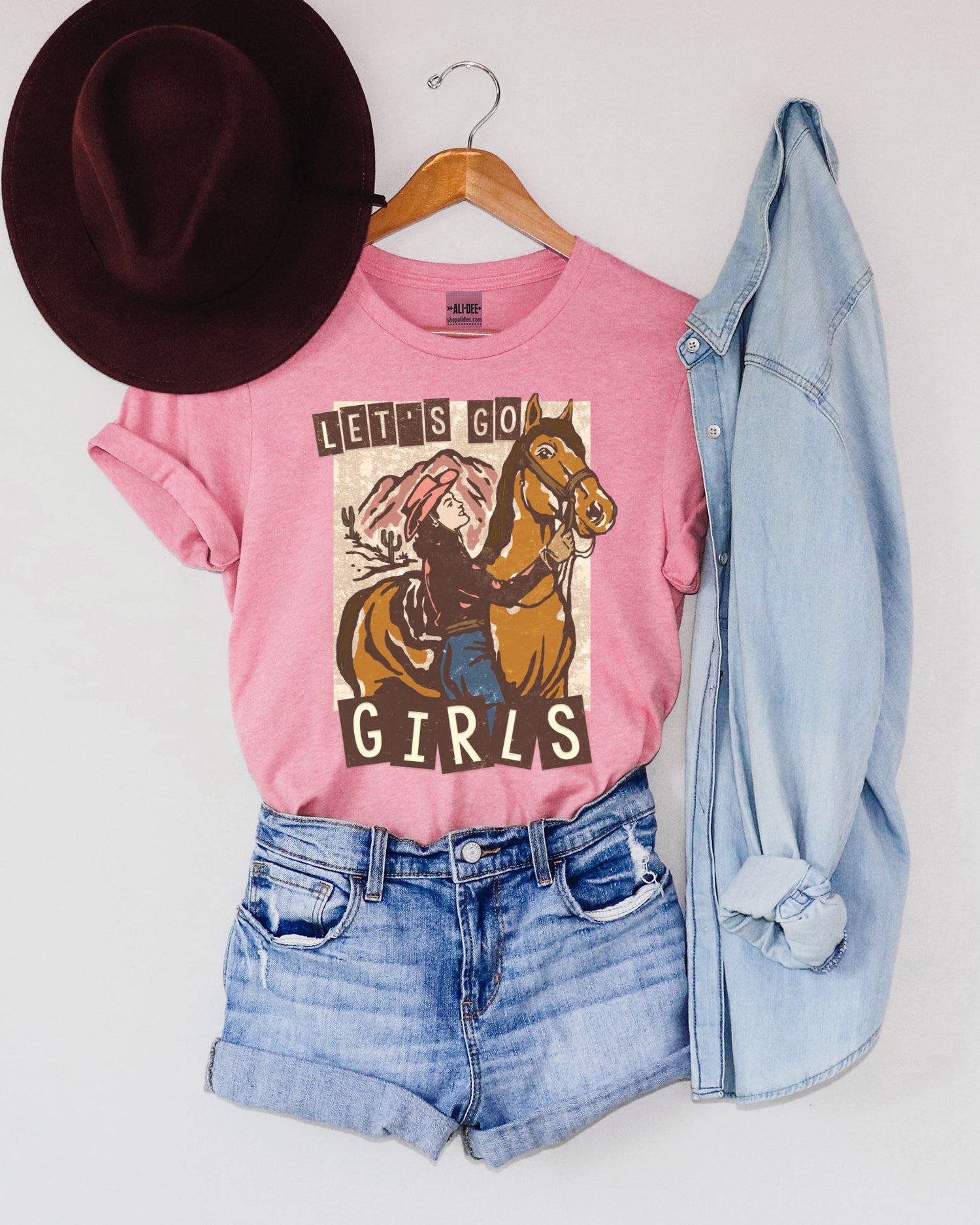 Let's Go Girls Western Graphic Tee- Heather Pink