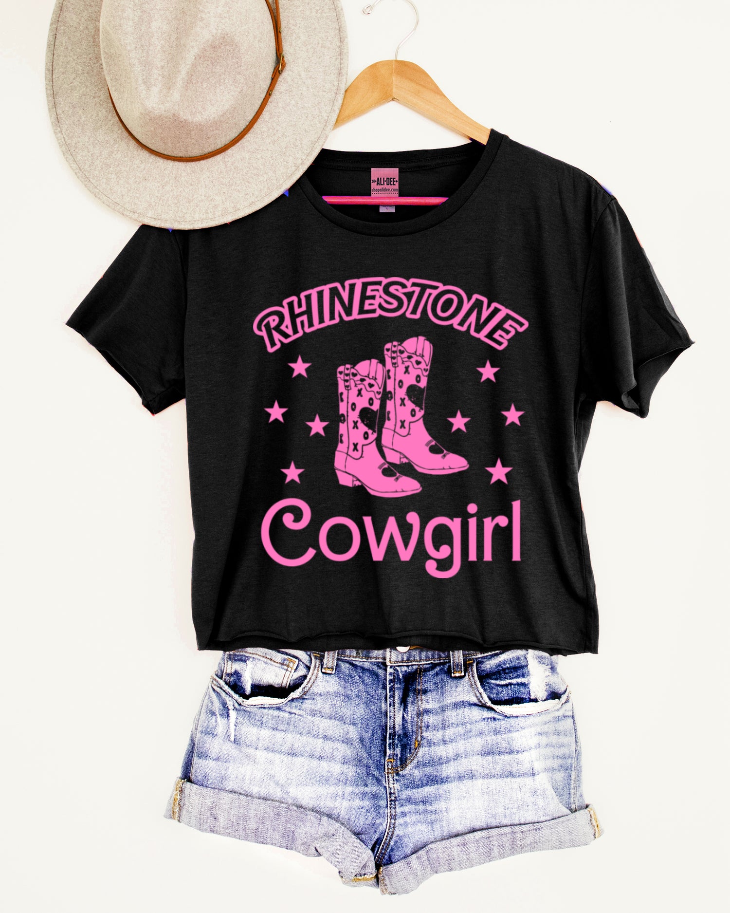 Rhinestone Cowgirl Western Graphic Crop Tee - Cropped Black