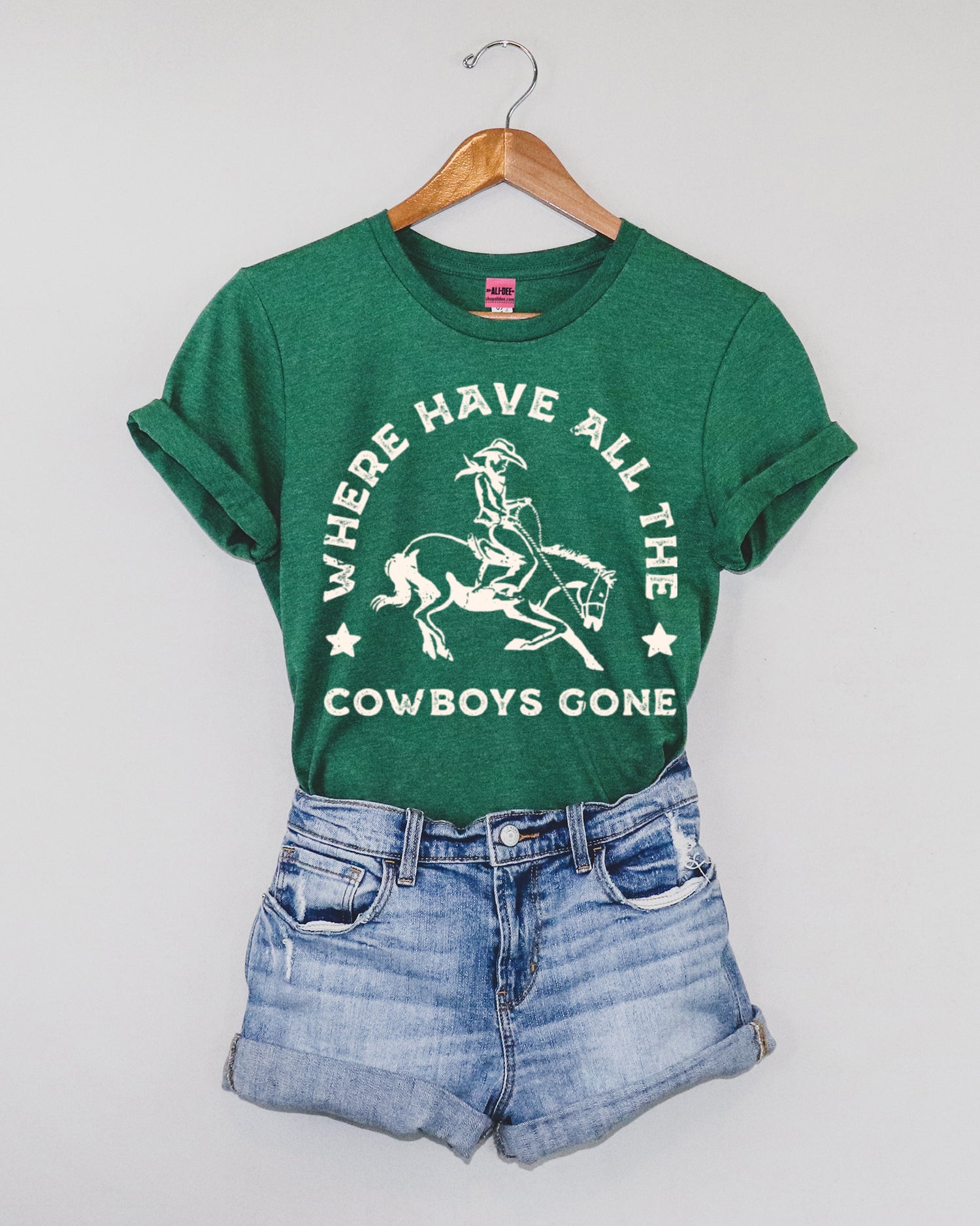 Where Have All The Cowboys Gone Western Graphic Tee - Heather Grass Green