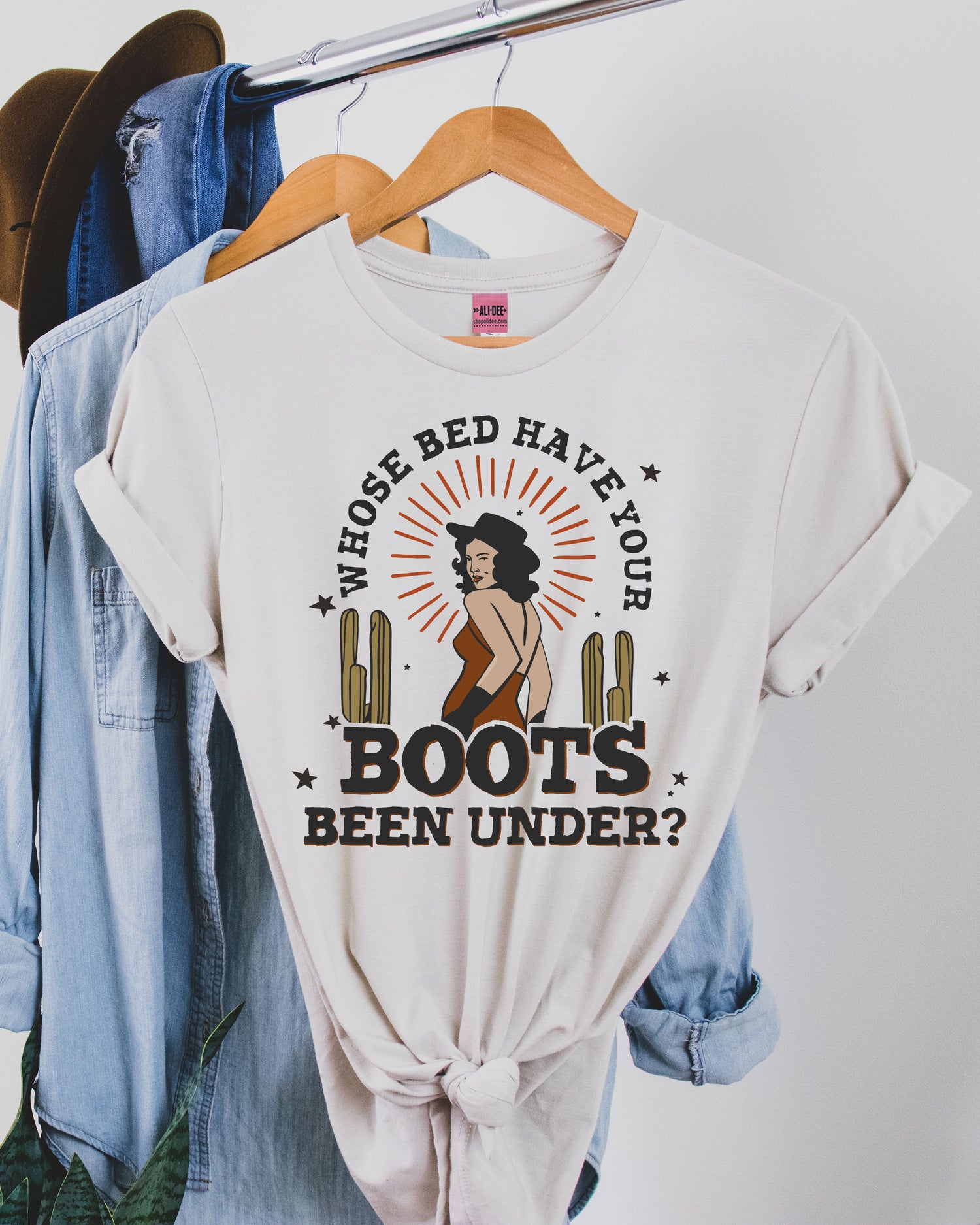 Whose Bed Have Your Boots Been Under Western Graphic Tee - Heather Dust